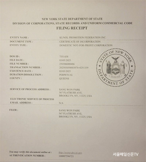 ±è¼­Áß ±âÀÚ / ¹Ú»ó¿ø Çѱ¹¾îÀ¯¿£°ø¿ë¾îÃßÁø¿¬ÇÕ(KUNOL Promotion Federation) ÃÑÀç°¡ ¹Ì±¹ ´º¿åÁÖ¿¡ ºñ¿µ¸®¹ýÀÎ ½ÅûÀ» ¿Ï·áÇϰí, ¹Ì¿¬¹æ±¹¼¼Ã»(IRS)¿¡¼­ ³³¼¼¹øÈ£(EIN 33-3806267)¸¦ ºÎ¿©¹Þ¾Ò´Ù°í ¹àÇû´Ù.