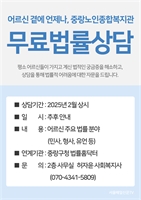 ½Ã¸³Áß¶û³ëÀÎÁ¾ÇÕº¹Áö°ü, ¾î¸£½ÅµéÀ» À§ÇÑ ¹«·á¹ý·ü»ó´ã Á¦°ø¡ã ¹«·á¹ý·ü»ó´ã Æ÷½ºÅÍ »çÁøÁ¦°ø=½Ã¸³Áß¶û³ëÀÎÁ¾ÇÕº¹Áö°ü±è¼­Áß ±âÀÚ / ½Ã¸³Áß¶û³ëÀÎÁ¾ÇÕº¹Áö°üÀº 2025³â...