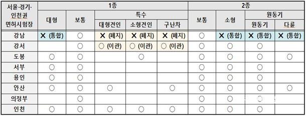 ±âÁ¸ °­³²¿îÀü¸éÇã½ÃÇèÀå¿¡¼­ ¿î¿µÇÏ´ø Á¦1Á¾Æ¯¼ö ±â´É½ÃÇèÀº ¿¬Áß ¾ÈÁ¤ÀûÀÎ ´ë±¹¹Î ¼­ºñ½º Á¦°øÀ» À§ÇØ °­¼­¿îÀü¸éÇã½ÃÇèÀåÀ¸·Î À̰üÇϰí 4¿ù 15ÀÏ(È­)ºÎÅÍ ½ÃÇàÇÑ´Ù.